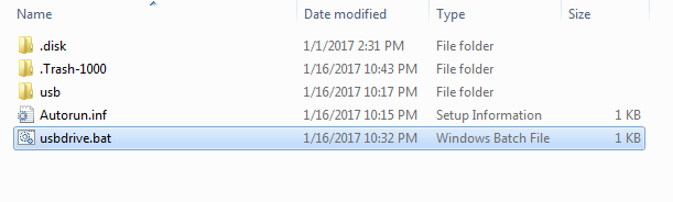 5.Selanjutnya buatlah file dengan extensi .bat ,contoh disini saya kasih nama usbdrive.bat biar gak dicurigai. Dan masukan code ini :